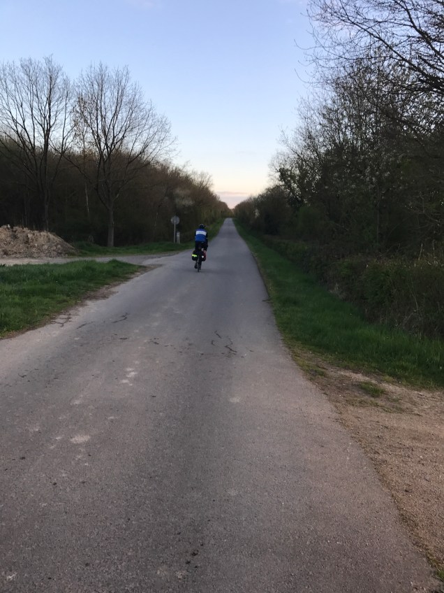 Despite a weather forecast of rain, we didn’t get any. That was relief and we started to make better progress on quiet roads where we’d sometimes not see a car for miles. The sun came out and we were treated to a beautiful spring evening. Our pace quickened and as we approached our 100-mile target at around 6:45pm, we stopped and used our phones to find somewhere to stay. Due to a bit of finger trouble with booking.com, I booked a hotel that I thought was two miles away but turned out to be 14 miles south. At least is was on our route.