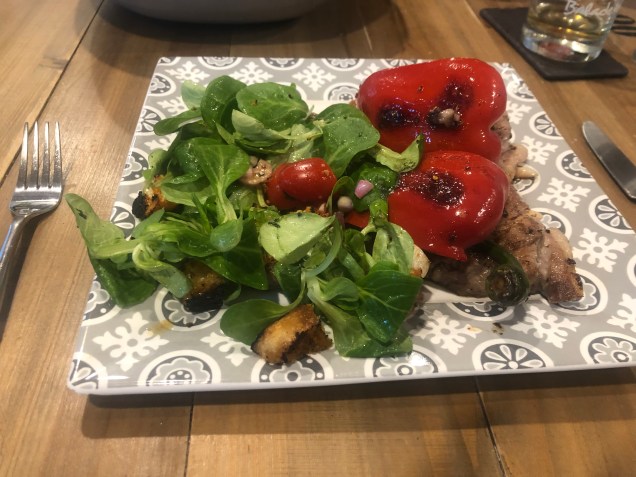 After a short shopping trip, French-trimmed lamb cutlets with peppers and salad re-fuelled us. We ended these evening with a stroll to a nearby bar with the most fabulous selection of wines.