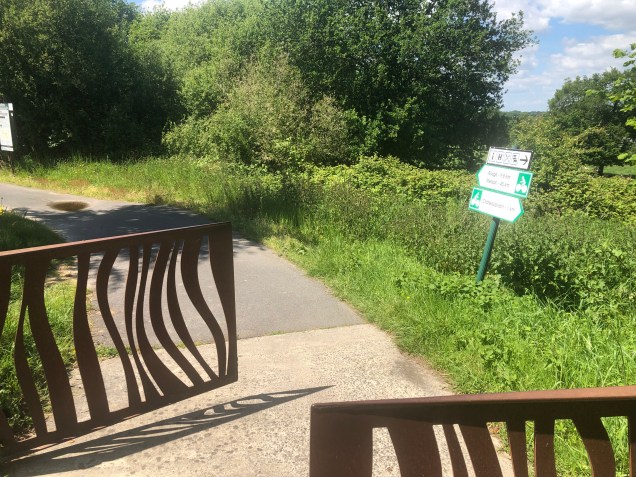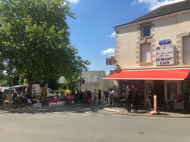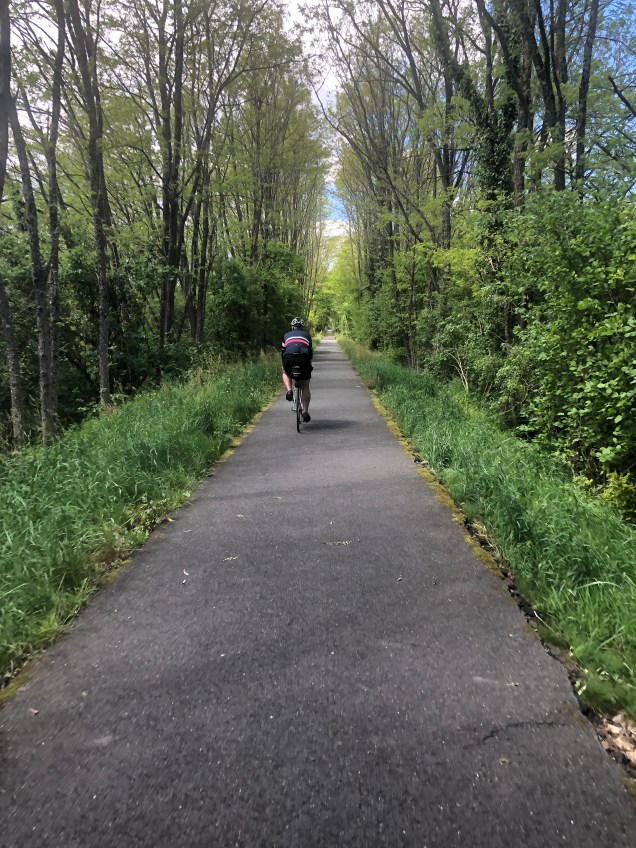 As we came to the outskirts of Chateuabriant, we were directed onto a cycleway that was once a railway line. At first we thought it was going to take us out of our way but Komoot directed us along it for 15 miles or so. The surface was perfect, the surrounding deciduous woodland so much more alive with birdsong than the pine forests in the South West we’d passed through earlier in the week, and we were sheltered from the wind, at least for a while.