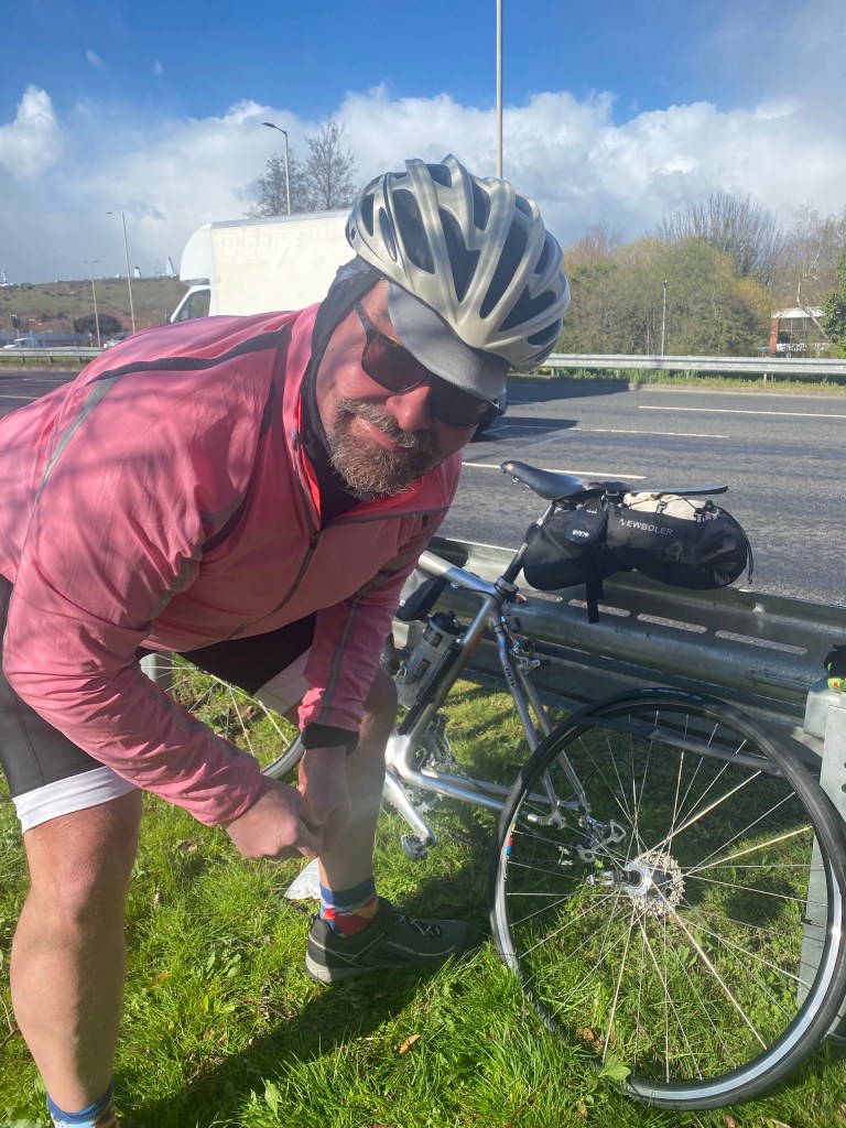Well done you three, when mending a puncture don’t trap the inner-tube between the spoon-handle and the wheel rim ! Safe riding- Sue & Roger.